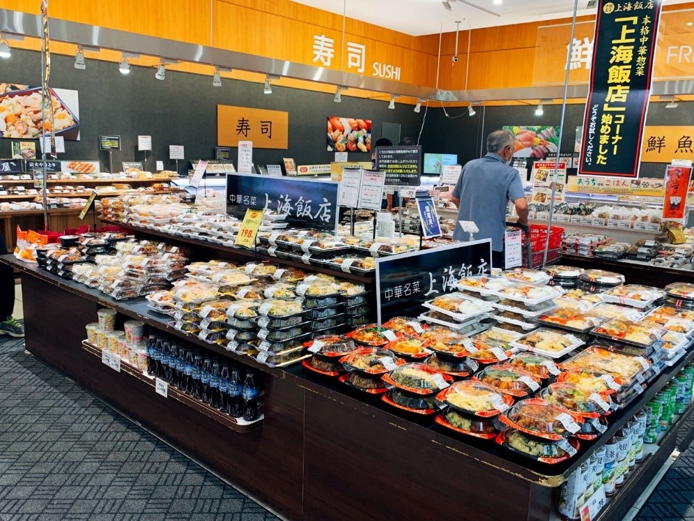 店内陈列着各种各样的中华熟食和便当,顾客可以选取自己喜欢的菜品,